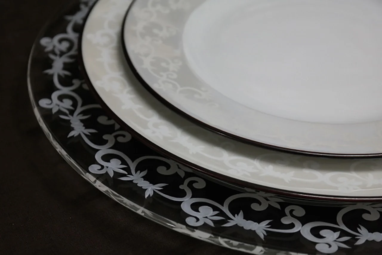 frs. 1.- supplémentaire par personne pour les couverts. frs. 1.- supplémentaire par personne pour les verres. Possibilité de louer des accessoires de décoration assortis à ce service. Décoration florale sur demande.